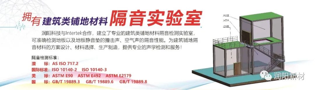 据了解,为了进一步增强自身科研实力,更好服务下游客户,润阳科技与Intertek建筑工程事业部合作,建立专业的建筑类铺地材料隔音检测实验室,可准确检测地板及地板静音垫的撞击声、空气声的隔音性能。为建筑铺地隔音材料的方案设计、材料选择、生产制造,提供专业的声学检测和服务。